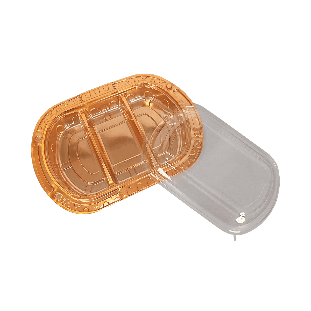 ZK-PET-047金色PET食品包裝容器代表了包裝創新的巔峰。這些容器將美學吸引力與卓越的功能相結合,為希望在遵守嚴格的安全和可持續性標準的同時提升產品外觀的食品品牌提供了全面的解決方案。