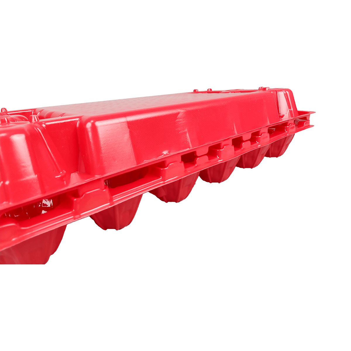 在當(dāng)今具有環(huán)保意識的市場中,對可持續(xù)包裝解決方案的需求比以往任何時候都高。我們的一次性啞光紅PET 18蛋紙箱正面滿足了這一需求,提供了一種既實用又環(huán)保的產(chǎn)品。通過選擇PET,我們選擇了一種有助于減少廢物和保護自然資源的可回收材料。